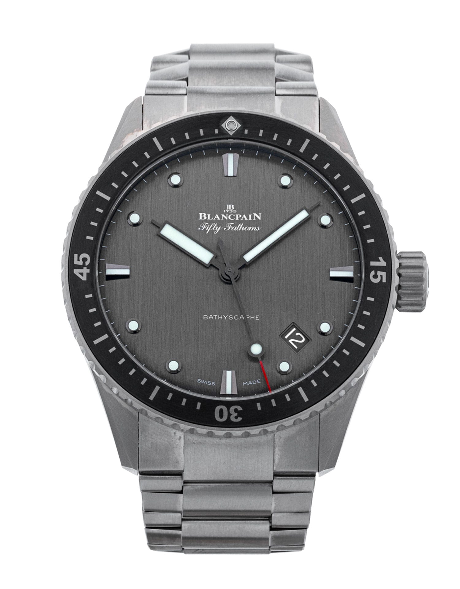 Diese spezifische Blancpain Fifty Fathoms 5000-1210-98S hat ein anthracite ziffernblatt mit einem metall / keramik armband. Diese Blancpain wurde einer gründlichen Prüfung der Wasserbeständigkeit, Genauigkeit, Funktionalität und des Zustands unterzogen, um den Grad der Überholung zu bestimmen, der zur Einhaltung unserer strengen Standards erforderlich ist. Sie wurde auch mit technischen Dokumenten und Herstelleraufzeichnungen verglichen, falls vorhanden, um Echtheit und einen einwandfreien Werdegang zu gewährleisten. Zu Ihrer Sicherheit verfügen alle unsere Uhren über eine 24-monatige Garantie.