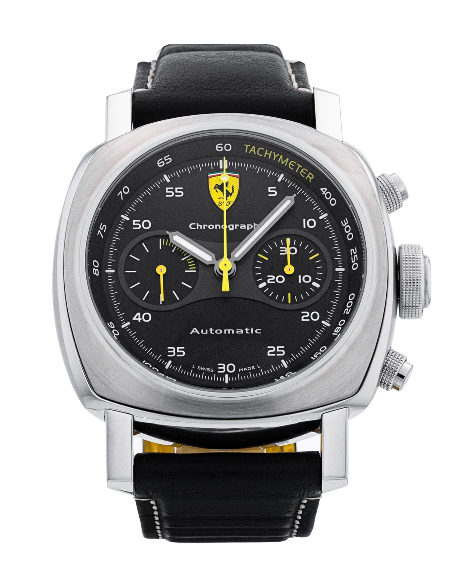 Diese spezifische Panerai Ferrari FER00008 hat ein schwarz baton ziffernblatt mit einem leder armband. Diese Panerai wurde in unserem Panerai-zertifizierten Servicecenter einer gründlichen Prüfung der Genauigkeit, Funktionalität und des Zustands unterzogen, um den Grad der Überholung zu bestimmen, der zur Einhaltung unserer strengen Standards erforderlich ist. Sie wurde auch mit unseren Unterlagen verglichen, um die Echtheit zu gewährleisten. Zu Ihrer Sicherheit verfügen alle unsere Uhren über eine 24-monatige Garantie.