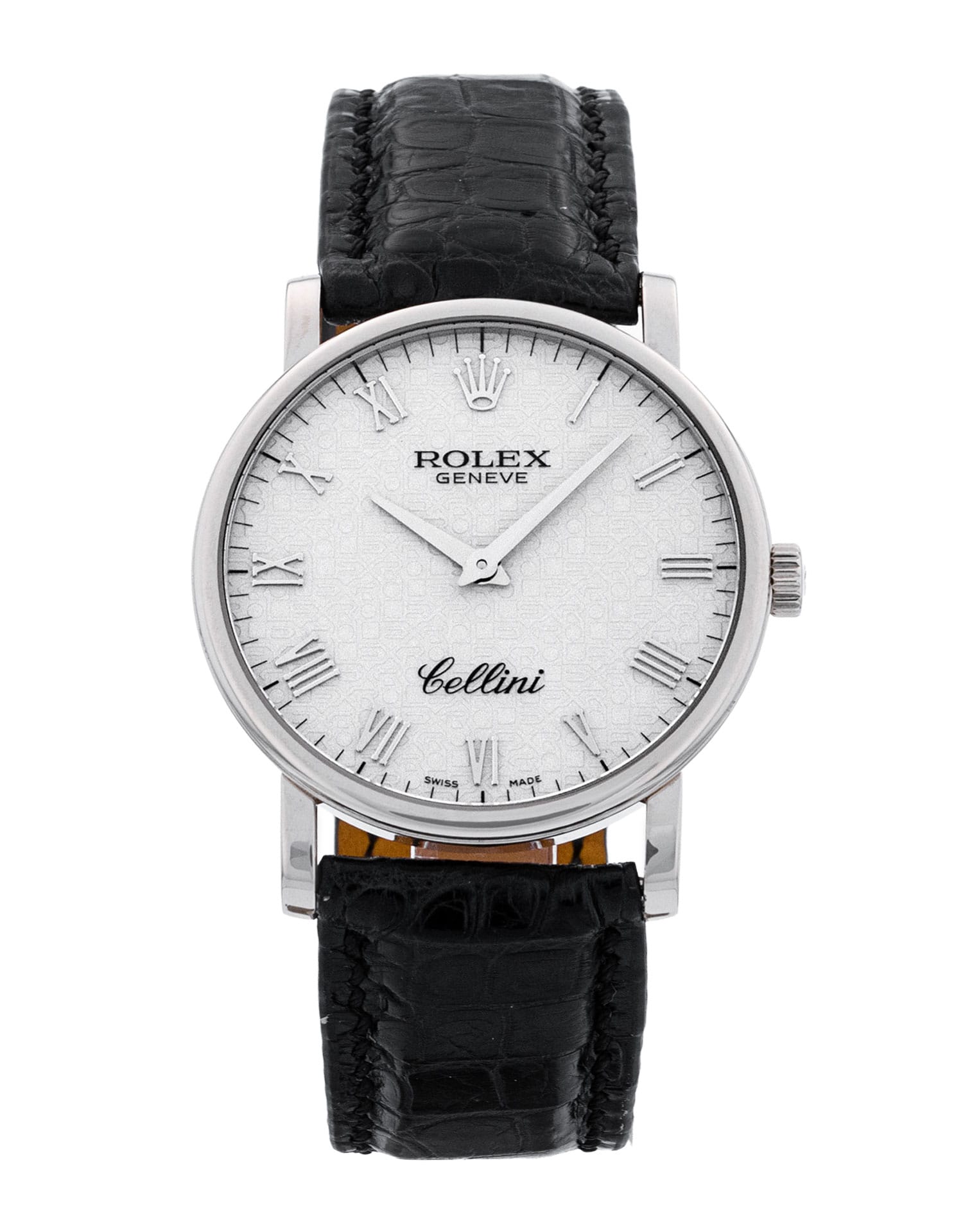 Diese spezifische Rolex Cellini 5115/9 hat ein elfenbein jubilee römische ziffer ziffernblatt mit einem leder armband. Diese Rolex wurde einer gründlichen Prüfung der Wasserbeständigkeit, Genauigkeit, Funktionalität und des Zustands unterzogen, um den Grad der Überholung zu bestimmen, der zur Einhaltung unserer strengen Standards erforderlich ist. Sie wurde auch mit technischen Dokumenten und Herstelleraufzeichnungen verglichen, falls vorhanden, um Echtheit und einen einwandfreien Werdegang zu gewährleisten. Zu Ihrer Sicherheit verfügen alle unsere Uhren über eine 24-monatige Garantie. Einer unserer Poliertechniker hat die durch tägliche Abnutzung entstandenen Makel auf dem Gehäuse und dem Armband dieser Uhr entfernt, weshalb diese Uhr nicht mit der verbleibenden Herstellergarantie geliefert wird.