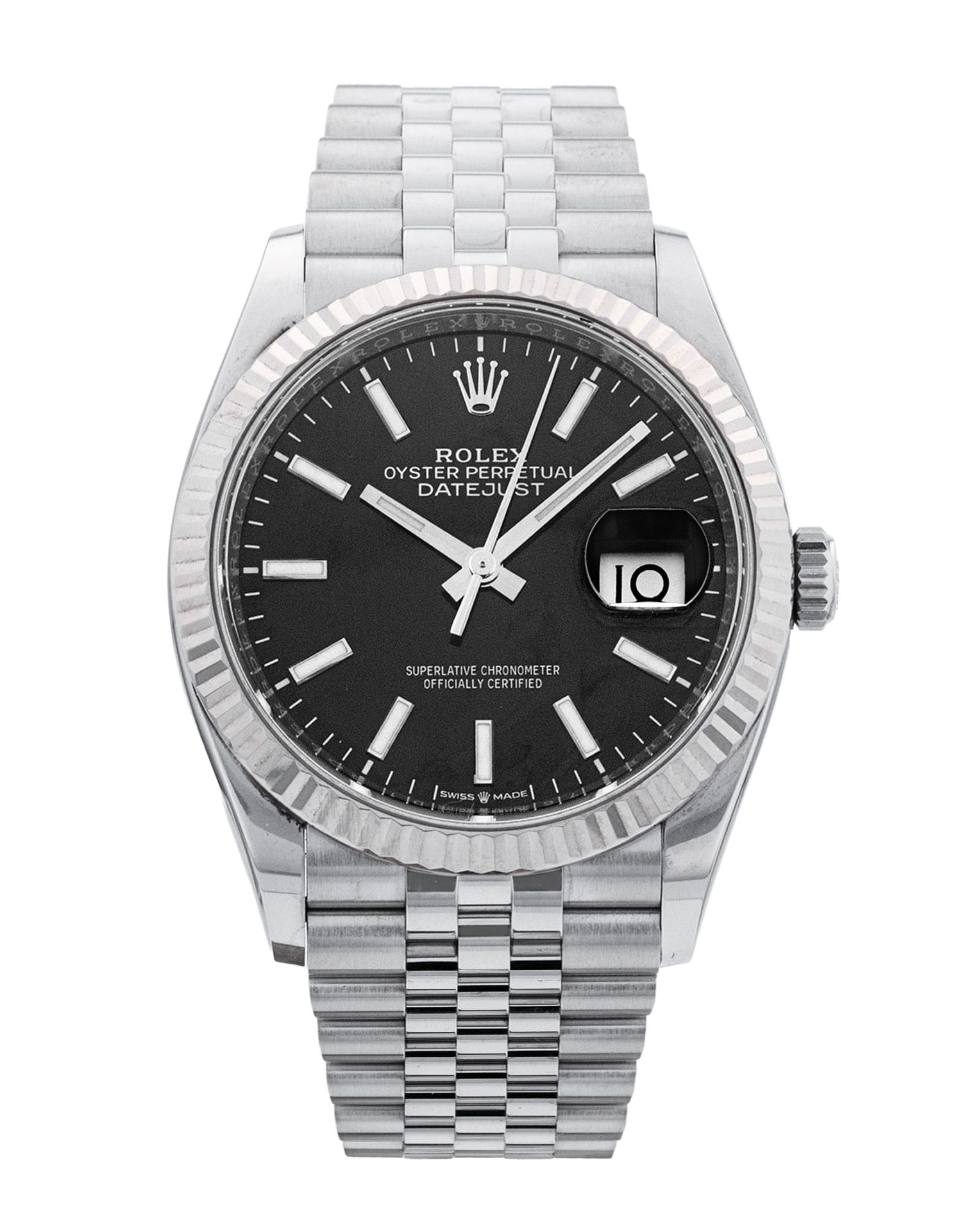 Diese spezifische Rolex Datejust 126234 hat ein schwarz baton ziffernblatt mit einem metall / keramik armband. Diese Rolex wurde einer gründlichen Prüfung der Wasserbeständigkeit, Genauigkeit, Funktionalität und des Zustands unterzogen, um den Grad der Überholung zu bestimmen, der zur Einhaltung unserer strengen Standards erforderlich ist. Sie wurde auch mit technischen Dokumenten und Herstelleraufzeichnungen verglichen, falls vorhanden, um Echtheit und einen einwandfreien Werdegang zu gewährleisten. Zu Ihrer Sicherheit verfügen alle unsere Uhren über eine 24-monatige Garantie. Einer unserer Poliertechniker hat die durch tägliche Abnutzung entstandenen Makel auf dem Gehäuse und dem Armband dieser Uhr entfernt, weshalb diese Uhr nicht mit der verbleibenden Herstellergarantie geliefert wird.