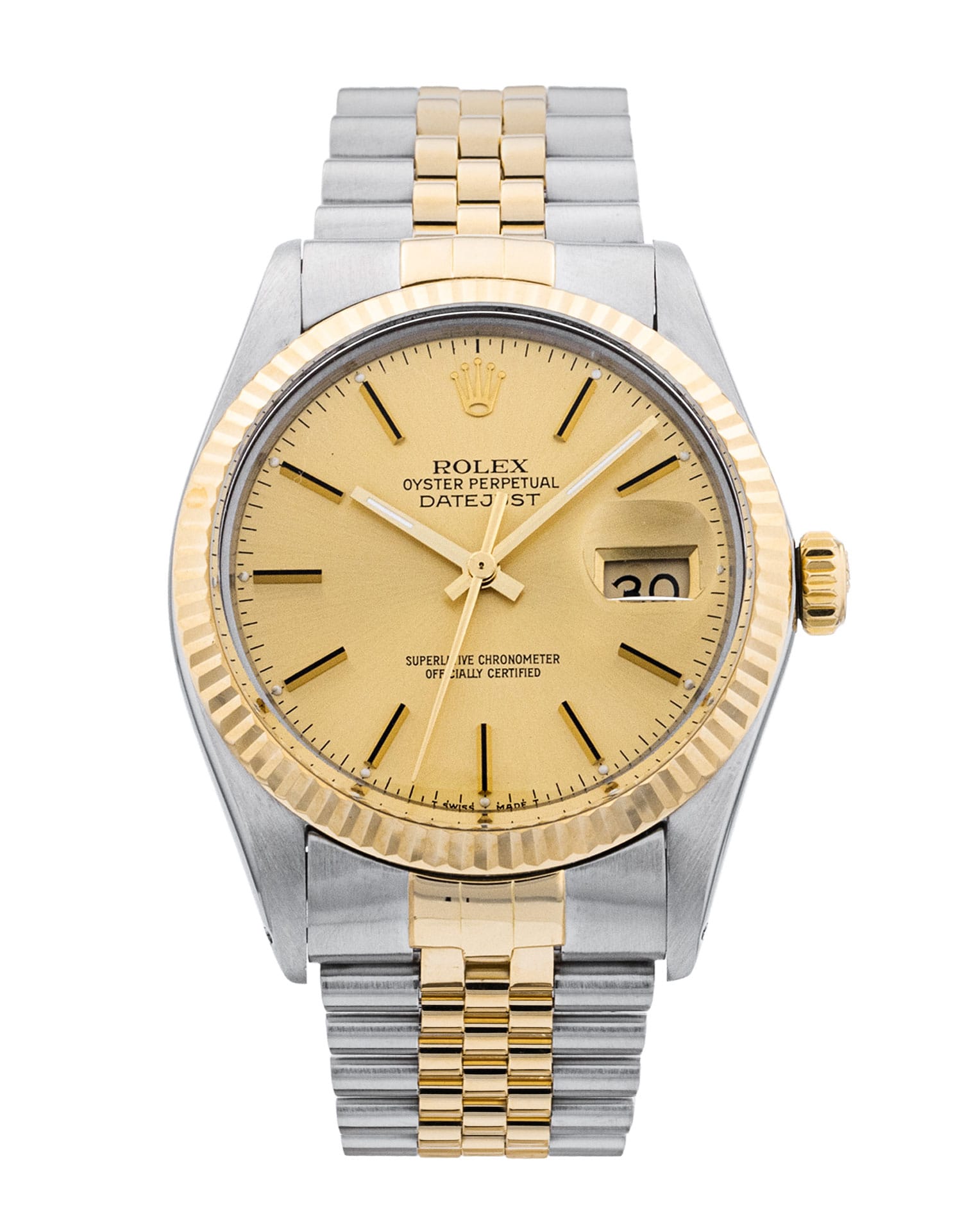 Diese spezifische Rolex Datejust 16013 hat ein champagner baton ziffernblatt mit einem metall / keramik armband. Diese Rolex wurde einer gründlichen Prüfung der Wasserbeständigkeit, Genauigkeit, Funktionalität und des Zustands unterzogen, um den Grad der Überholung zu bestimmen, der zur Einhaltung unserer strengen Standards erforderlich ist. Sie wurde auch mit technischen Dokumenten und Herstelleraufzeichnungen verglichen, falls vorhanden, um Echtheit und einen einwandfreien Werdegang zu gewährleisten. Zu Ihrer Sicherheit verfügen alle unsere Uhren über eine 24-monatige Garantie. Einer unserer Poliertechniker hat die durch tägliche Abnutzung entstandenen Makel auf dem Gehäuse und dem Armband dieser Uhr entfernt, weshalb diese Uhr nicht mit der verbleibenden Herstellergarantie geliefert wird.