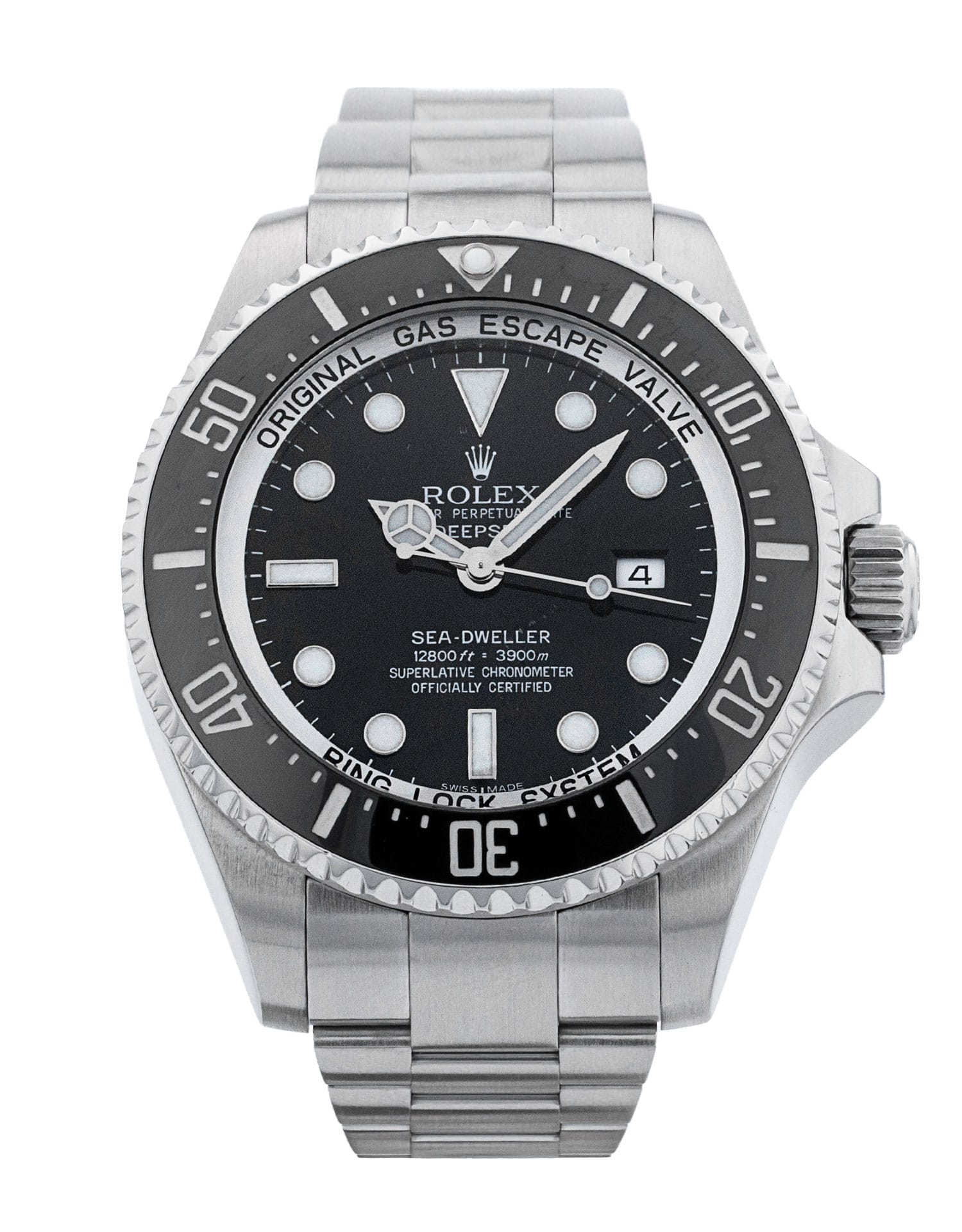 Diese spezifische Rolex Deepsea 116660 hat ein schwarz ziffernblatt mit einem metall / keramik armband. Diese Rolex wurde einer gründlichen Prüfung der Wasserbeständigkeit, Genauigkeit, Funktionalität und des Zustands unterzogen, um den Grad der Überholung zu bestimmen, der zur Einhaltung unserer strengen Standards erforderlich ist. Sie wurde auch mit technischen Dokumenten und Herstelleraufzeichnungen verglichen, falls vorhanden, um Echtheit und einen einwandfreien Werdegang zu gewährleisten. Zu Ihrer Sicherheit verfügen alle unsere Uhren über eine 24-monatige Garantie. Einer unserer Poliertechniker hat die durch tägliche Abnutzung entstandenen Makel auf dem Gehäuse und dem Armband dieser Uhr entfernt, weshalb diese Uhr nicht mit der verbleibenden Herstellergarantie geliefert wird.