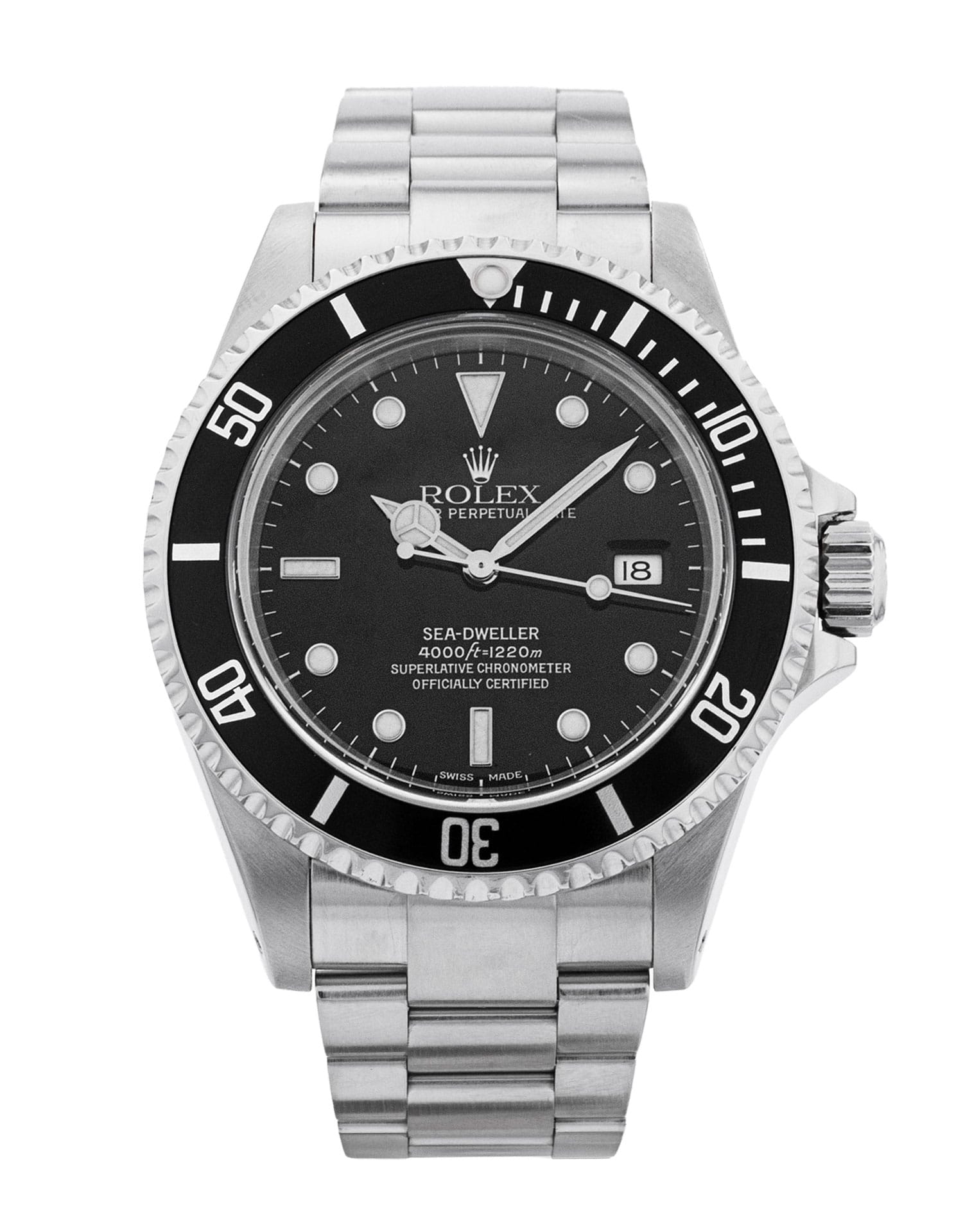 Diese spezifische Rolex Sea-Dweller 16600 hat ein schwarz ziffernblatt mit einem metall / keramik armband. Diese Rolex wurde einer gründlichen Prüfung der Wasserbeständigkeit, Genauigkeit, Funktionalität und des Zustands unterzogen, um den Grad der Überholung zu bestimmen, der zur Einhaltung unserer strengen Standards erforderlich ist. Sie wurde auch mit technischen Dokumenten und Herstelleraufzeichnungen verglichen, falls vorhanden, um Echtheit und einen einwandfreien Werdegang zu gewährleisten. Zu Ihrer Sicherheit verfügen alle unsere Uhren über eine 24-monatige Garantie. Einer unserer Poliertechniker hat die durch tägliche Abnutzung entstandenen Makel auf dem Gehäuse und dem Armband dieser Uhr entfernt, weshalb diese Uhr nicht mit der verbleibenden Herstellergarantie geliefert wird.