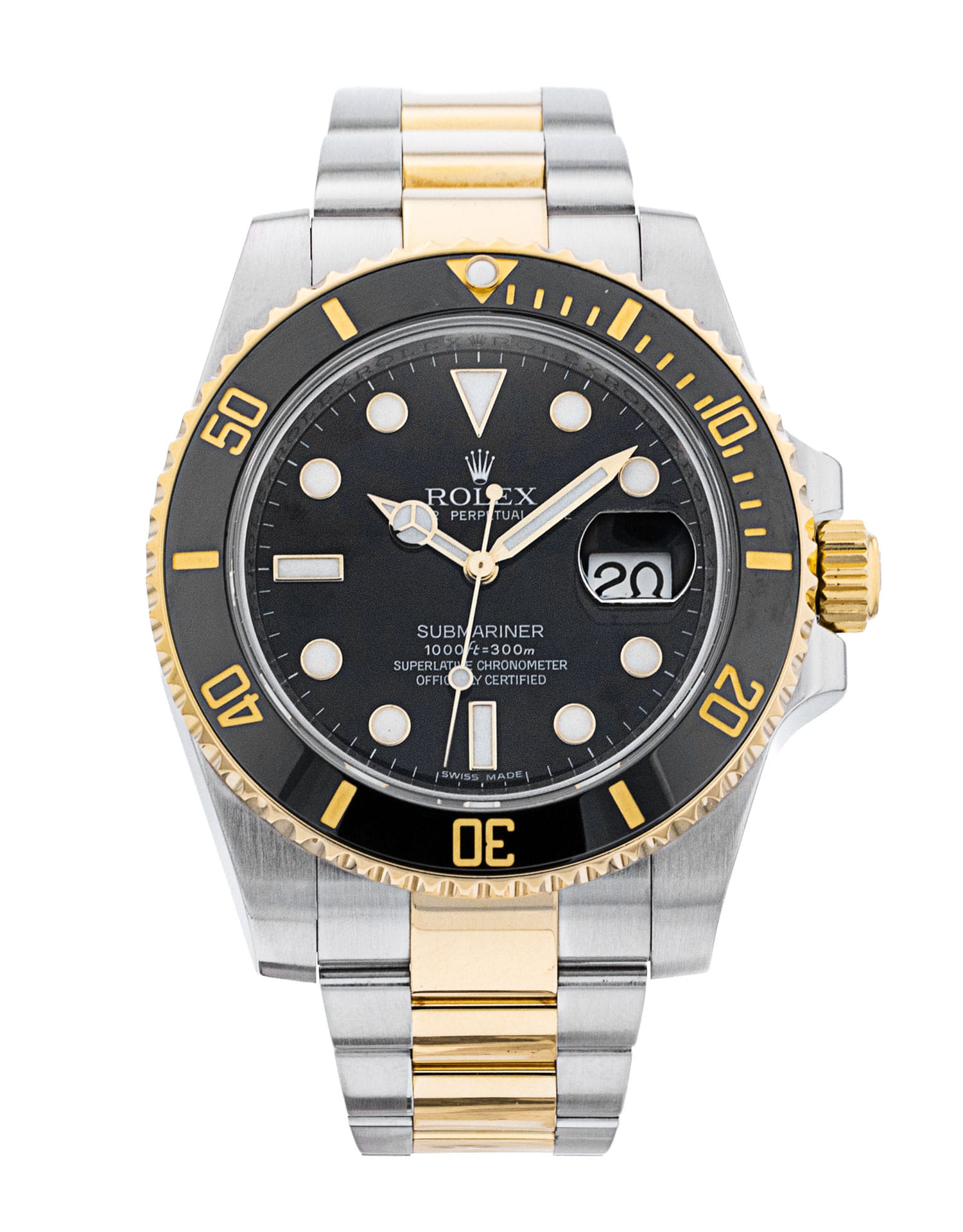 Diese spezifische Rolex Submariner 116613 LN hat ein schwarz ziffernblatt mit einem metall / keramik armband. Diese Rolex wurde einer gründlichen Prüfung der Wasserbeständigkeit, Genauigkeit, Funktionalität und des Zustands unterzogen, um den Grad der Überholung zu bestimmen, der zur Einhaltung unserer strengen Standards erforderlich ist. Sie wurde auch mit technischen Dokumenten und Herstelleraufzeichnungen verglichen, falls vorhanden, um Echtheit und einen einwandfreien Werdegang zu gewährleisten. Zu Ihrer Sicherheit verfügen alle unsere Uhren über eine 24-monatige Garantie. Einer unserer Poliertechniker hat die durch tägliche Abnutzung entstandenen Makel auf dem Gehäuse und dem Armband dieser Uhr entfernt, weshalb diese Uhr nicht mit der verbleibenden Herstellergarantie geliefert wird.